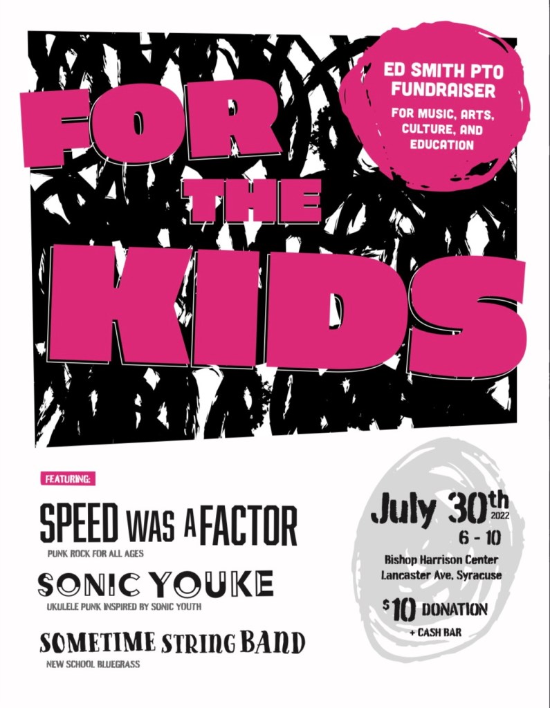 7/30/22 Bishop Harrison Center- Syracuse N.Y. Playing with Speed Was a Factor, and Sometime String Band 6-10PM. Fundraiser for Ed Smith PTO for Music, Arts, Culture, and Education.